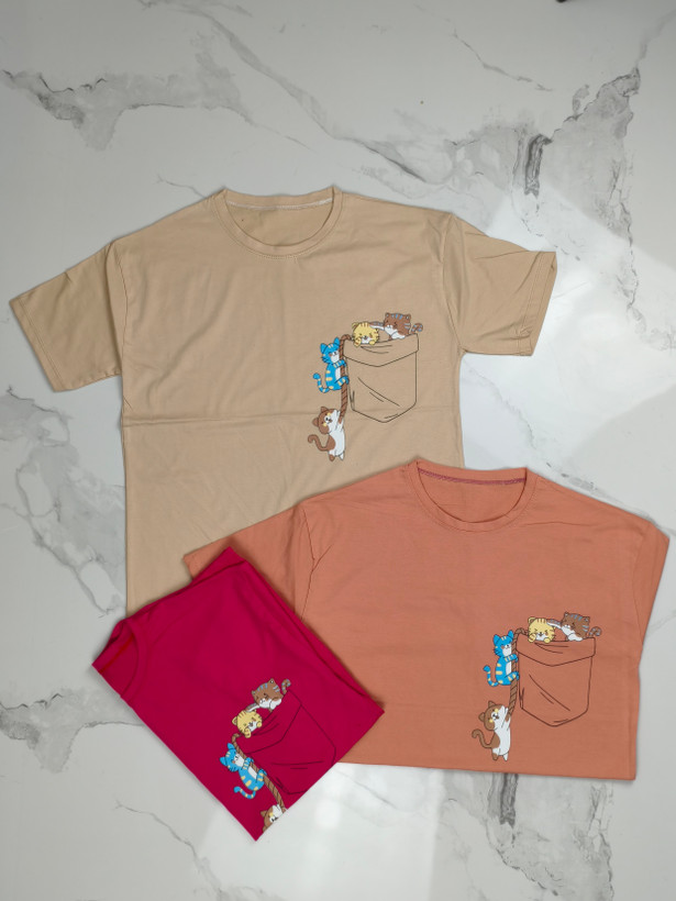 تیشرت زنانه باکسی طرح گربه(پرداخت اقساطی)